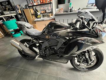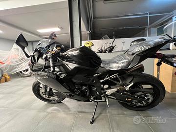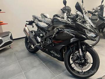 -KAWASAKI ZX-4R MY25 -KM0 -IMPORTO TOTALMENTE FINANZIABILE Motore Motore a 4 cilindri in linea, 4 tempi, raffreddato a liquido. Cilindrata: 399 cm Iniezione elettronica Prestazioni Potenza massima: 57 kW (77 PS) a 14.500 rpm. Con ram-air: 58,7 kW (circa 80 PS). Coppia massima: circa 39 N·m a 13.000 rpm Regime di rotazione molto elevato: il motore può superare i 15.000 rpm. Telaio e sospensioni Telaio: traliccio in acciaio ad alta resistenza. Forcella anteriore: invertita da 37 mm (Showa), tipo SFF-BP. Sospensione posteriore: mono-shock "Horizontal Back-link", regolabile nel precarico della molla. Freno anteriore: doppi dischi semi-galleggianti da 290 mm con pinze radiali monoblocco a 4 pistoni. Freno posteriore: singolo disco da 220 mm con pinza a pistone singolo. Sistema ABS (anti-bloccaggio) integrato. Dimensioni e massa Altezza sella: 800 mm. Altezza da terra (ground clearance): circa 135 mm. Capacità serbatoio carburante: 15 litri. Peso a vuoto (curb mass): ~188 kg. Ruote e pneumatici Pneumatico anteriore: 120/70-17. Pneumatico posteriore: 160/60-17. Strumentazione e elettronica Strumentazione: display TFT a colori da 4,3''. Modalità di guida: diversi riding mode. Controllo di trazione (KTRC - Kawasaki Traction Control). Connettività smartphone. Gas elettronico (ride-by-wire). Possibilità di quick-shifter (up & down) su alcune versioni. Aspirazione Sistema Ram-Air per aumentare l'efficienza di carica. Design e stile Carena sportiva in stile "Ninja", aggressiva e aerodinamica. Illuminazione a LED integrata. (fari LED) Seduta biposto (pilota e passeggero). Emissioni e consumi Consumo medio: ~5,1 L/100 km (dato Kawasaki Europa). CONTATTACI AL NUMERO: TELEFONO: CELLULARE: