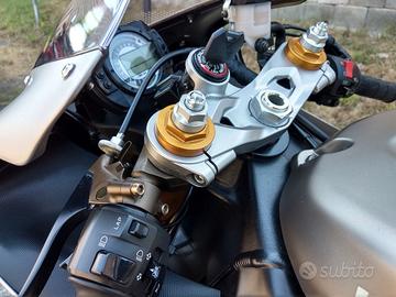 La moto è come nuova perfetta, tante parti in ergal, non ha un minimo graffio o segnetto è tenuta in modo maniacale, scarico titanio Leovince full Factory, pompa discacciati appena messa nel posteriore e brembo rcs corsa corta anteriore garantiscono frenate da moto gp, candele all'iridio olio bardal e filtro aria K&N lavabile, vendo a malinquore per passaggio a 1000, non trattabile il prezzo.