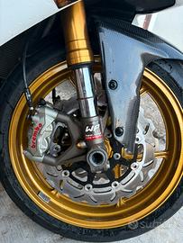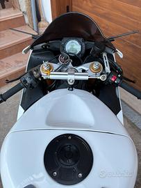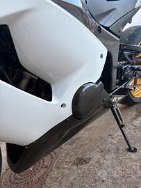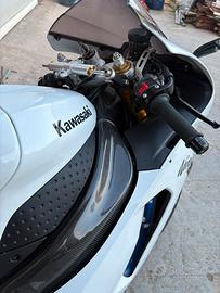 Kawasaki zx6r depotenziata a libretto per patente a2 con diversi accessori tra cui dischi freno a margherita,tubi freno accosato ant e post con eliminazione snodo anteriore, pinze brembo gp4rs, pompa freno brembo rcs corsacorta da 19, tubi raffredamento in silicone, svariati pezzi in carbonio:paratelaio, paraforcellone, parafango anteriore, vasca inferiore, copricarter frizione/statore e paraserbatoio. Filtro aria bmc. Pedane arretrate Valtermoto, cambio elettronico a salire regolabile. Ammortizzatore di sterzo ohlins. Tappo serbatoio sgancio rapido Scarico completo arrow in titanio con terminale in carbonio completo di collettori 4-2-1. Gommata con supercorsa. Completa di pezzi originali e scarico originale catalizzato La moto viene utilizzata non ha difetti, il kilometraggio può variare in base all'utilizzo