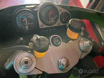 Ultima serie.Anno 2002 . Livrea serie 2001 telaio nero . km 12.600 . Tagliandata completamente. Moto intonsa da collezione e preservata in uso almeno dal 2006 con riscontri documentali quali da : Publico Registro Automobilistico , Aci , Motorizzazione, Ania , Car Vertical , Elenco regionale posizione tributaria, Asi e Certificato di Rilevanza Storica e Collezionistica nonche documentazione di manutenzione diversa a riscontro. Moto tutta coeva, tutta prima vernice , e totalmente originale . Inesistenza su tutta la moto di graffi o di abrasioni , seppur minimi o celati in controluce . Carene , viti, trasparenti, livrea adesiva alta e bassa, supporti , cablaci , carter diversi, radiatore , steli forcelle, bulloneria diversa, telaio , silenziatore, collettori, condotti, cerchi, fanalerie, plastiche .... esenti da lesioni, spellature, segni e o scolorimenti di alcun genere e rilevanza . Un unico di mercato perché mezzo amato nel tempo ed evidentemente anche "fortunato" perchè conservato da diverse proprietà in collezione . Non fate per favore, offerte da scaltri mercanti in fiera , perché non vi darò risposta. Se interessati , anche solo per piacevole condivisione di passione, primo contatto tassativamente solo da WhatsApp ; altro materiale a riscontro . Trousse attrezzi intatta , libretto di Uso e Manutenzione intonso , tre chiavi specchiate di fabbrica , ammortizzatore Ohlins dedicato ed originale in dotazione , cavalletto posteriore , due flaconcini Kit vernice e trasparente originali e "sigillati" a corredo . Resa su strada di l'alta qualità meccanica conservata, percepita alla guida. Se non allineati alla piacevole condivisione per medesime attenzioni di cura e passione , non vi è necessità di essere ignoranti e arroganti. Grazie.