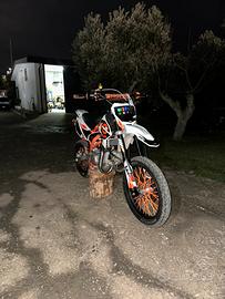 Allestita con radiatore ad olio per un migliore raffreddamento, pompa freno radiale da 17,5 per una frenata più precisa e ruote motard ideali per uso stradale. ( cedo gomma anteriore da cross al 80 %