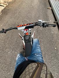 Pit bike tenuta maniacalmente, tagliandata ogni 15ore su 60 ore totali, doppio scarico in carbonio, carburatore 24, pignone 2 denti più grande, gomme nuove. Prezzo trattabile