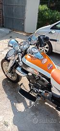 Moto custom trasformata in Harley v Road ,motore tutto messo a nuovo cn borse in cuoio Franco cuoio .