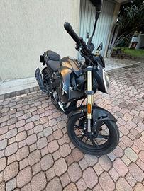 Vendo per passaggio a cilindrata superiore rkf 125 modello con porta usb sul manubrio ottima moto per chi ha appena preso la patente a1 per imparare ad andare in moto, moto comprata nuova e utilizzata per spostamenti casa scuola e qualche uscita. Fatto il rodaggio fino a 1000km e sempre tagliandata in officine specializzate con annesse fatture, ultimo tagliando eseguito a inizio stagione estiva a 7476km dove è stato eseguito un controllo generale di tutta la moto più il classico cambio olio e filtro. Unico difetto sul parafango anteriore come mostrato in foto, causato mentre levavo il telo protettivo con poca attenzione. E' una moto che consuma pochissimo si fanno circa 30/35 km con 1 litro.