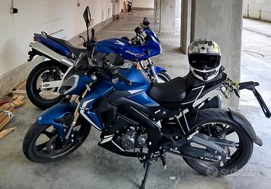 Vendo Rkf 125 del 2023 per cambio cilindrata. Ottima per imparare, divertente da guidare, le tre candele la rendono scattante nonostante i pochi cv. Sempre tagliandata in casa madre Benelli fino a scadenza garanzia, presenti ricevute. Ha 11 kW, velocità massima 99 km/h; raffreddamento a liquido, conta marce sul display. Forcelle rovesciate color oro, ABS a doppio canale. Colore inusuale, edizione limitata. Porta USB per il cellulare. Ai 20mila ho fatto l'ultimo tagliando e sono state cambiate candele, filtro aria, olio, filtro olio e trasmissione della Did Ha qualche graffio, niente danni eclatanti ma ho dovuto cambiare le pedaline perché piegate e una delle "ali" è crepata. Freni in ottimo stato (70% ad ultimo tagliando), gomme un po' meno. Visionabile e prezzo trattabile.