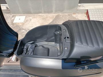 La doppia sella in pelle con sedute separate è valorizzata dalle eleganti cuciture ed offre al pilota e al passeggero il comfort ideale durante ogni viaggio oltre a un ampio vano per un casco