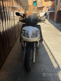 Vendo Kilibre 300, motore perfettamente funzionante, praticamente rifatto recentemente, perché a breve non potrò più usarlo per parecchio tempo causa intervento. ha i segni del tempo ma funziona egregiamente. ha solamente da sostituire gli ingranaggi del mozzo della ruota posteriore, che ho visto si trovano a 50€. Gomma anteriore nuovissima, ha fatto la strada dal gommista al box. completo di copertina termica e parabrezza alto aggiuntivo. per il bauletto un piccolo contributo aggiuntivo di 50€.