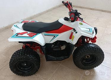 Miniquad monomarcia per bambini 110cc con motore monocilindrico 4 tempi, avviamento elettrico, doppi freni a disco anteriori e uno posteriore, pneumatici da "7, peso kg.92.