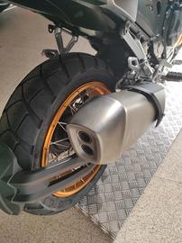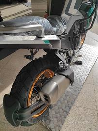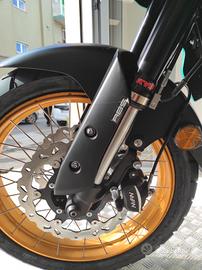 L'impianto frenante Nissin, l'ABS escludibile e i cerchioni Akront di tipo tubeless con pneumatici Metzeler, garantiscono prestazioni e sicurezza sia su asfalto che fuori.