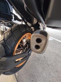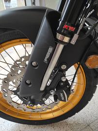 L'impianto frenante Nissin, l'ABS escludibile e i cerchioni Akront di tipo tubeless con pneumatici Metzeler, garantiscono prestazioni e sicurezza sia su asfalto che fuori.