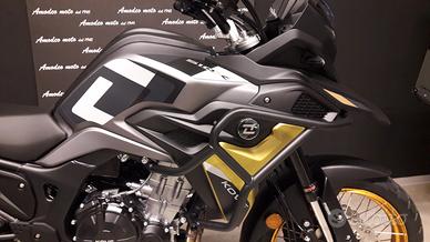 Fantastica crossover, finiture al Top, leggera e dinamica nella guida , tutta da scoprire!!Caratterizzata da sospensioni Kayaba con 210mm di escursione anteriore e 195mm posteriore, completamente regolabili. Il telaio in acciaio a culla aperta, leggero e maneggevole, contribuisce a un peso fra i più bassi della sua categoria. L'impianto frenante Nissin, l'ABS escludibile e i cerchioni Akront di tipo tubeless con pneumatici Metzeler, garantiscono prestazioni e sicurezza sia su asfalto che fuori.Il propulsore bicilindrico parallelo da 498cc offre una potenza massima di 35kW, adatta alla guida con patente A2, e una coppia di 45Nm. La versatilità è amplificata dalle mappe Sport ed Eco, consentendo una guida adattabile alle diverse situazioni.