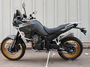 Dotazioni estremamente complete e raffinate come: cerchioni tangenziali, pneumatici tubeless, TCS controllo di trazione, frizione anti-saltellamento, frenata con ABS escludibile, ammortizzatore di sterzo, barre protettive, paracoppa in alluminio, portapacchi, display TFT da 7'' con mirroring BT e illuminazione full-LED, rendono questa moto una compagna perfetta per avventure su asfalto e fuori.