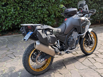 Accessoriata con borse laterali Savage e borsa da serbatoio con sgancio rapido.