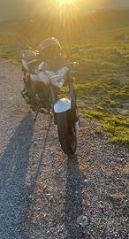moto perfetta in tutto tagliando fatto a 9800km ora ne ha 10000 insieme alla moto vendo una coppia di mitas ancora da montare, catena sempre ingrassata e manutenzionata, prezzo leggermente trattabile dato che ha piccoli graffi per stupide scivolate