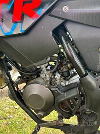 moto usata, un pochino da aggiustare ma i pezzi ci sono. Dovumenti a posto, omologata, è un cinquantino modificato ma si puo circolare, di colore blu e bianca