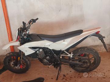 una KSR Moto TR 125 SM. È dotata di un motore monocilindrico a 4 tempi da 125 cc con iniezione elettronica. Rispetta la normativa antinquinamento Euro 4. Si tratta di un modello di tipo "motard", noto per la sua maneggevolezza. La velocità massima si aggira intorno ai 110 km/h. In questo momento la moto ha bisogno di lavori perché non parte . I km sono segnati all'incirca. Per informazioni e vederla direttamente chiamaremi Vendo per inutilizzo prezzo trattabile