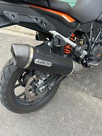 La moto è equipaggiata con scarico Arrow omologato, cupolino maggiorato, para motore, para telai originali Ktm powerparts, faretti aggiuntivi, piastra porta bauletto e bauletto originale.