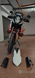 Frecce led ktm Powerparts, paracarena sw motech, kit parafango alto, faretti supplementari, paramani alluminio KTM powerparts, batteria litio, scarico completo con collettore Arrow e terminale akrapovic e mappatura dedicata fe.ma motors, dongle ABS, telaietto laterale GIVI monokey a sgancio rapido, sospensioni anteriori a cartuccia chiusa con sistema conevalve e molle a coefficiente maggiorato Andreani