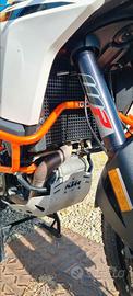 KTM 1090 Adventure R del 2018, unico proprietario. La moto ha 107000km, non ha mai perso un colpo ed è in ottime condizioni, vendo a malincuore perché ho ceduto ad una più stradale per uscite e viaggi solo asfalto in due. In questi anni sono stato maniacale nella manutenzione: dopo i due anni di garanzia ho cambiato io l’olio ogni 8 – 10 mila km e fatto revisionare le sospensioni circa ogni 20 – 25000km. Non consuma olio, unico guasto avuto è stato il pickup a circa 90000km, già che aprivo ho cambiato anche lo statore in via preventiva tutto con ricambi originali KTM. Ogni 30000 km ha fatto tutti i controlli più importanti in KTM, io mi sono sempre limitato alle attività facili. Ultima revisione sospensioni fatta a circa 98000 km, sostituito per usura il pompante del monoammortizzatore. Fasce sigillanti dei cerchi cambiate di recente perché pizzicate dal gommista. La trasmissione è ancora buona, oliata regolarmente anche durante i viaggi. Gioco valvole controllato a circa 95000km in KTM, radiatore nuovo causa perdita. Niente fuoristrada troppo impegnativo, qualche uscita e un paio di eventi semplici per maxi enduro. Non ho fatto modifiche se non regolazioni per ergonomia (manubrio, pedane, leve), è tutto originale e funzionante. Monta i seguenti accessori: -Manopole riscaldate -Cavalletto centrale -Attuatore frizione Oberon -Griglia radiatore PowerParts + quella in plastica -Paracoppa PowerParts -Selle PowerParts -Supporto navigatore SW-Motech -Collettore coibentato -Barre aggiuntive Outback Motortek (attualmente smontate) -Attacco rapido benzina in metallo -Posso fornire telaietto per valigie morbide e sella originale rifatta più alta Moto visibile in zona Modena, prezzo 6900€. Posso valutare permuta solo con 690 o 701 per provare un fuoristrada un po’ più serio.