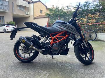 vendo KTM Duke 125 2021. UNICO PROPRIETARIO. Monta terminale Arrow e specchi a manubrio. Vendo causa inutilizzo. Insieme alla moto consegno specchi e scarico originali, seconda chiave, telo da esterno e giacca ktm originale. La moto presenta graffi alle plastiche e scarico visibili in foto. Telaio e meccanica in perfette condizioni. Prezzo TRATTABILE