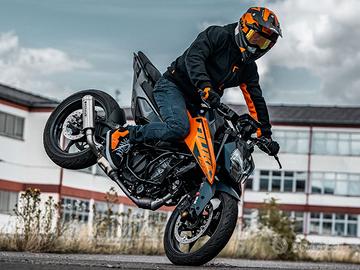 FUORI TUTTO KTM Guagliumi Moto - Concessionaria Ufficiale KTM a Roma KTM 125 DUKE 2024 Costruzione 1 cilindro, motore a 4 tempi Cilindrata 124.9 cm³ Coppia 11.5 Nm Cambio 6 marce Altezza sella 800 mm LISTINO: 5.730€ PROMO FUORI TUTTO: 4.200€ Siamo a Roma, in Piazza Pio XI, 67, e stiamo lanciando il nostro FUORI TUTTO KTM su moto nuove in pronta consegna. Disponiamo di uno stock selezionato con sconti fino a 4.000€ su diversi modelli KTM. Tutte le moto sono nuove, disponibili immediatamente e visionabili presso la nostra sede. I proprietari dei modelli KTM 790 DUKE, 890 DUKE, 990 DUKE, 990 DUKE R, 990 RC R, 790 ADVENTURE, 890 ADVENTURE, 890 ADVENTURE R, 890 ADVENTURE R RALLY, 890 SMT, 1390 SUPER DUKE R e 1390 SUPER DUKE R EVO, 1390 SUPER ADVENTURE R, 1390 SUPER ADVENTURE S EVO e 1390 SUPER ADVENTURE S possono contare su un'estensione della Garanzia del Costruttore di ben 24 mesi, per un totale di 4 anni! La promozione è gratuita e per mantenerne diritto è necessario rispettare il programma di manutenzione definito dal Costruttore, effettuando la manutenzione programmata - o comunque un tagliando all'anno - presso un Concessionario Ufficiale KTM. Inoltre, la garanzia è legata alla motocicletta e non al pilota e può quindi contribuire a mantenere alto il valore in caso di rivendita. Offriamo inoltre formule di finanziamento personalizzate, con possibilità di anticipo variabile e rate su misura. [?] Le disponibilità sono limitate: si tratta di un numero selezionato di moto in stock. Contattaci ora per maggiori informazioni o per fissare un appuntamento in showroom. Ti aspettiamo da Guagliumi Moto - Piazza Pio XI, 67 - Roma. LE INFORMAZIONI CONTENUTE NEL SITO WEB SONO STATE COMPILATE CON OGNI CURA AFFINCHÉ FOSSERO COMPLETE, TUTTAVIA, A VOLTE POSSONO CONTENERE ERRORI E OMISSIONI. SI DECLINA QUINDI OGNI RESPONSABILITÀ SE LE INFORMAZIONI CONSULTATE NON CORRISPONDONO ALLO STATO EFFETTIVO