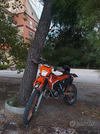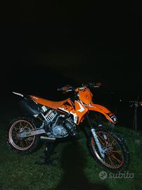 vendo ktm exc 125 del 1999, la moto ha 0 ore è ancora da rodare, pistone vertex, pompa dell'acqua nuova, trasmissione completa nuova, filtro aria cambiato da 1 mese, scarico doma racing con lana appena rimessa, cuscinetti cerchio 18 e 19 Appena rimessi, revisione e bollo pagati, gomme al 40%, impianto elettrico DA RIVEDERE perché non è mai stato collegato perché è stata montata una barra led a batteria per comodità comprata su amazon, omologata 2 persone, guidabile con patente a1 a 16 anni, pedalina kick starter nuova, tubo frizione appena sostituito, pasticche braking posteriori appena sostituite, presenta uno spacco sul codino, per il resto le plastiche e grafiche sono buone, cedo un kit di plastiche vecchie rovinate ,cerchio da 19 gommato con gomma dunlop al 70%, specchietti,disco braking, corona 52 denti, , faro e altri accessori. prezzo poco trattabile per info contattate