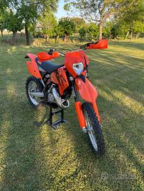Vendo ktm 125 exc del 2006 per passaggio a cilindrata superiore, la moto è stata completamente restaurata nel inverno 2020 (motore completo/telaio/plastiche) usata solo per uscite domenicali nei campi tuttavia presenta tipici segni di usura. Valuto permute solo per Honda CR250 dal 2000/01 oppure Kawasaki KX250 1999/02 NO altre moto/marche/annate. Lavori eseguiti di recente: Revisione forcelle Revisione freni anteriori e posteriori Sostituzione lana di roccia del silenziatore Sostituzione lamelle originali con boyesen doppio stadio Insieme alla moto cedo un set plastiche e faro originale. Prezzo trattabile dopo presa visione