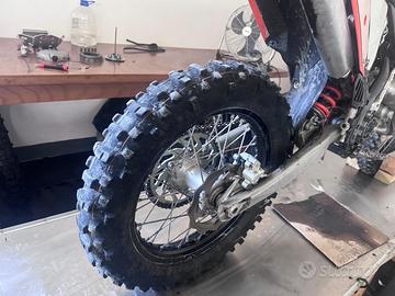 Ktm exc 125 anno 2008, blocco motore con 20 ore all'attivo, sospensioni revisionate completamente da 5 ore, catena corona e pignone con 10 ore, disco anteriore nuovo. Adesso come si vede da foto sto sostituendo la frizione quindi nuova anche quella.