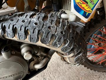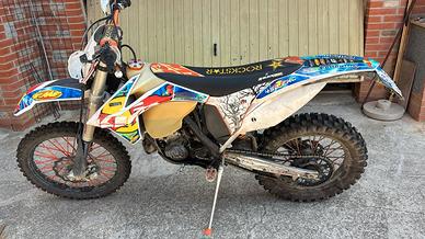 La moto si presenta in ottime condizioni, il motore è pienamente funzionante e la carrozzeria è come nuova. La moto presenta delle plastiche con grafiche personalizzate e un kit di plastiche aggiuntivo utilizzato unicamente per l'enduro. La moto presenta inoltre tutte le attrezzature necessarie per fare enduro dispone di un para motore in plastica rigida, parasteli in plastica, paratelaio in plastica, protezioni per forcellone posteriore e protezione armadillo per l'espansione. La moto presenta come accessori racing: manubrio in ergal della Renthal, paramani racing, sella da corsa rockstar, paracolpi rockstar e tappo serbatoio in ergal oltre che leve frizione-freno e pedane in ergal. Come attrezzatura aggiuntiva non montata sulla moto, ma compresa nel prezzo: clacson mai utilizzato, le frecce anch'esse nuove, specchietto, corona 48 denti stradale, leve frizione e freno in ergal, pasticche freno anteriore e pedane nuove.