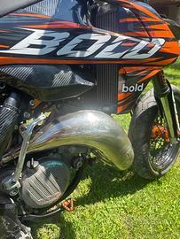 Fornisco anche scarico completo originale, plastiche, farro originale, cerchi enduro con gomme quasi nuove completi con catena, dischi freno e corona + altri pezzi originali.