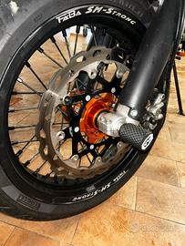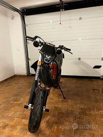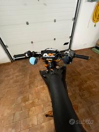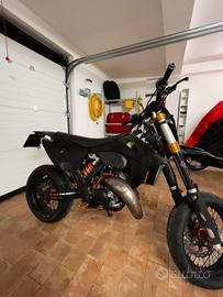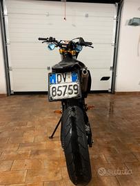 Vendo bellisimo ktm 125 exc motard con omologazione a libretto motard e enduro; alla moto e stato rifa il motore con ricromatura e lavorazione di tutto il cilindro e cambio pistone, attualmente la moto ha finito il rodaggio ed e ferma in garage, é sempre stata fatta scaldarare, miscela fatta a norma e tenuta bene; inoltre monta: - cerchi motard faba con mozzo arancione -pedaline/ puntalino freno e frizione/ leve freno e frizione/ pedivella in ergal -piastra di sterzo nrg in ergal arancione -porta targa piegevole gtlab -tamponi gtlab -impianto elettrico nuovo con bloccetto chiavi e conta chilometri -faro led powerparts -micro frecce e faretto posteriore oscurato -accensione pvl -scarico completo fmf powercore 2 -disco anteriore 320 mm -gomme pireli diablo rosso ant(80%) post(80%) -copri serbatoio in carbonio gmt in piu cedo un kit plastiche arancione con anche vari pezi neri, esapnsione originale ed altri pezzi; prezo POCO trattabile