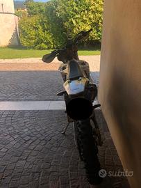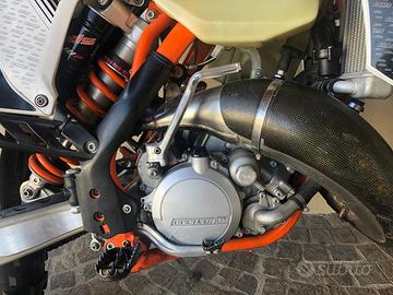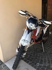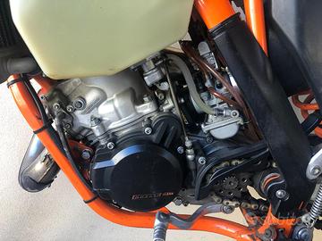 Vendo stupendo Ktm exc 125 six days Germany Saxony del 2013. - ore totali della moto 201 - rifatta e revisionata completamente a 130 ore da concessionario - tagliandi effettuati ogni 15/20 ore monta: - silenziatore HGS (6 ore di vita), espansione Ktm, copri espansione in carbonio. - carburatore keihin 36 e pacco lamellare V- force 3. - cerchi Excel six days. - trasmissione con pignone da 14 e corona da 50 arancione. Insieme do anche un cavalletto centrale proworks, un altro paio di fianchetti uguali, paracatena, para motore in plastica, silenziatore originale, pancia strozzata, una corona da 40, coprifiltro, pignone da 15 e uno da 13, un pistone Meteor, un altro paio di paramani, kit di getti per carburatore. Passaggio a carico dell’acquirente. Per altre informazioni non esitare a contattarmi.