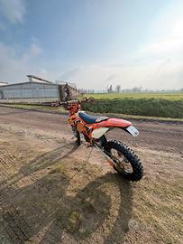 La moto monta diverse powerparts come scarico completo KTM Powerparts, protezione disco posteriore, manubrio rialzato, disco anteriore flottante galfer e altri accessori; cedo inoltre i suoi pezzi originali come scarico completo, kit di plastiche e grafiche originali Six Days e altro.