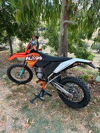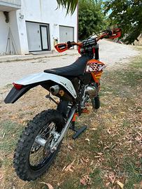 La moto monta vari pezzi come:paramotore in carbonio, silenziatore ktm factory (fmf), vari pezzi in ergal ecc.