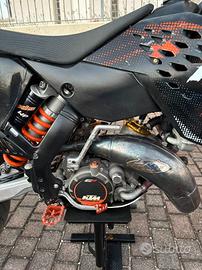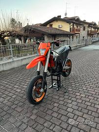 Vendesi Ktm exc 125 annata 2009, serbatoio 9,5 l, depotenziata a libretto per guida A1. modifiche: - testa vhm con inserti calcolati - pistone sx - pancia fmf calcolata - terminale fmf powerparts ktm - disco anteriore 320 - cerchi motard gommati 150-120 pirelli - rapporti 12-42 (dispongo anche 14-48) - svariate parti in ergal - faro nuovo ktm sx 22, angel eye e originale - plastiche nere, arancioni di scorta - plastiche ktm sx 2022 restyling anteriore - portatarga reclinabile - frecce e stop led appena cambiati - impianto elettrico rifatto - motore appena rifatto con 30 ore totali - tagliando regolare ogni 15 ore non possiede omologazione motard