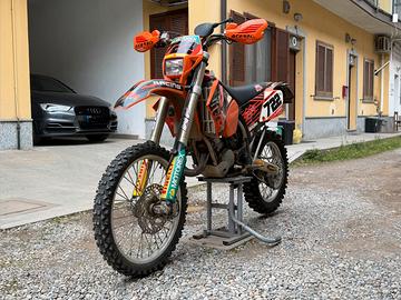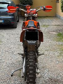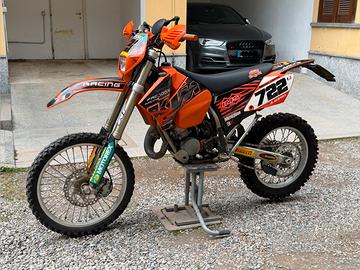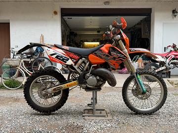 Vendo a malincuore per inutilizzo e per bisogno di spazio in garage KTM 125 EXC black factory modello 2004 in condizioni meccaniche impeccabili. La moto è stata rifatta completamente. Motore e ciclistica: • Motore: Rifatto totalmente, pistone, Biella, revisionato albero motore, cuscinetti di banco nuovi, pompa acqua, cestello, castello e frizione nuovi originali Ktm, ecc. …… solo il cestello frizione l’ho pagato 700€ ,dimostrabili tutti i lavori con scontrini dei ricambi ( i lavori li ho fatti io, per professione faccio il meccanico). Al momento la moto ha la revisione scaduta, è da revisionare, perché è ferma da un paio d’anni in garage coperta, ma se interessati ci accordiamo e faccio la revisione. • Trasmissione: Catena corona e pignone nuovi • Sostituiti i cuscinetti e parapolvere di entrambi le ruote. •Boccole forcellone nuove •Perno ruota posteriore nuovo originale Ktm • Gomme: metzeler six days ( anteriore da cambiare per usura ) •Freni anteriore e posteriore ok • Sospensioni: rifatte completamente sia le forcelle che il mono ammortizzatore sostituiti olio e paraoli La moto monta marmitta Doma racing con silenziatore Dep short, carburatore 38 keihin, Pacco lamellare vforce 3, insomma va forte non i 125 da ragazzine che fanno al giorno d’oggi…..Fornisco insieme alla moto il silenziatore originale e il porta targa originale per passare la revisione senza problemi, cedo anche il cavalletto alza moto …. Moto in condizioni impeccabili non c’è da spendere niente, tutto nuovo, a parte la gomma anteriore quasi da sostituire, ma con 50/60 € montando la stessa marca di gomma la sostituite, poi se volete risparmiare ne trovate di meno costose… Contattate solo se realmente interessati grazie!!!