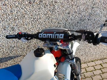 Motore: pistone nuovo, cuscinetti nuovi e paraolio nuovi. Coperchio frizione con sede pompa acqua rifatta in alluminio anticorrosione. Scarico del cross e silenziatore in alluminio nuovo. Carburatore Mikuni VM nuovo, consegno anche il Dellorto in magnesio originale del modello MX.