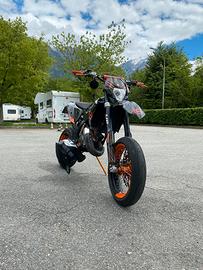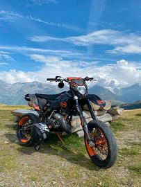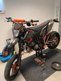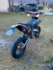 Vendo a malincuore fantastico KTM exc 125 motard del 2008 per passaggio ad auto Moto con doppia omologazione: enduro/motard Tenuta maniacalmente e mai incidentata, sempre tenuta in garage e lavata ogni 2 settimane. La moto monta: - ESTETICA: - kit plastiche nere - paracolpi ktm - maschera led ktm - cavalletto in regal arancione - leva cambio con puntale in ergal arancione - leva freno con puntale in ergal arancione - cavalletto in ergal arancione - pedane in ergal arancione - portatarga pieghevole Dev and Craft - MOTORE: - motore rifatto interamente circa 20h fa - pacco lamellare VForce 3 - carburatore 38 keihin - pancia Hgs - silenziatore Pro circuit - pompa frizione Magura - CICLISTICA: - kit motard faba 17" - gomma anteriore Pirelli 80%, posteriore Mitas 70% - pignone 13 denti motomaster - corona 43 denti motomaster - catena 520 oro motomaster - forcelle Wp tarate motard - mono Ktm tarato motard per 80kg - IMPIANTO FRENANTE: - disco anteriore 320 flottante ktm - pinza 2p brembo - pompa brembo - disco posteriore 270 motomaster flame - pinza 1p brembo Insieme alla moto cedo anche un sacco di pezzi come: kit plastiche nere graficate, silenziatore hgs, 3 altre corone, dei pezzi in ergal, un manubrio e un kit di molle per le forcelle. Moto funzionante e in perfette condizioni, prezzo leggermente trattabile.