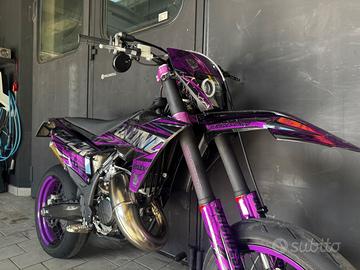 Kit plastiche originali, faro anteriore originale, marmitta originale, piastra anteriore originale, pedane originali, cerchi e pneumatici Excel da motocross originali inclusi.