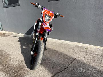 moto in ottime condizioni con motore completamente revisionato con 0 ore tutto fatturato e dimostrabile ( Pistone Biella Cuscinetti di Banco e Cambio Olio ), moto equipaggiata con cerchi FABA Motard e cerchi cross originali completi, porta targa racing 2 kit plastiche leve racing protezione telaio paramotore e protezione forcellone Acerbis oltre a tutti le parti originali che verranno consegnate insieme.