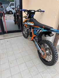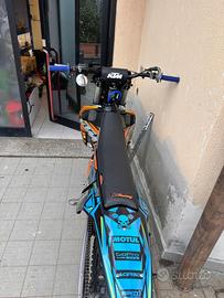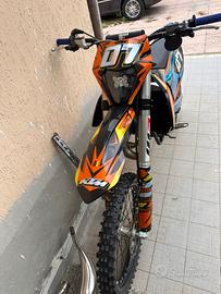 La moto è un ktm sx 125 del 2017, attualmente ha 120 h , il pistone ne ha 10 e le forcelle ugualmente , è stata tenuta maniacalmente e tagliandata ogni 10 h, ha lievi graffi, la moto ha :