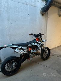 Vendo ktm 125 exc OMOLOGATA MOTARD. Pistone vertex appena finito il rodaggio. Cilindro lucidato. Controllo biella. La moto monta. - gomme motard nuove -cerchi da 17 ktm -termianle hgs -kit plastiche cromo personalizzate -faro oscurato con pellicola - impianto frenante maggiorato - ribassata motard oltre a questo, per lamiscela è sempre stato usato il power cross al 2%. Sempre cambiato lolio motore come da libretto, con il miglior olio sul mercato. La moto gira come un orologio svizzero, e si accende sempre alla prima spedivellata. prezzo leggermente trattabile