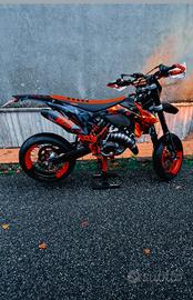 la moto monta uno scarico scalvini in carbonio con pancia lavorata, cerchi excel con adesivo bicolore, plastiche e grafiche nuove appena montate (cedo anche le vecchie plastiche ancora nuove),porta targa pieghevole, varie coperture in carbonio CMT e vari pezzi in ergal tra cui leve antirottura catena e corona, cedo anche paramani acerbis arancioni e bianchi,