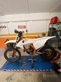 Vendo KTM 125 XC-W 2019 in ottime condizioni. Motore appena rifatto con cilindro, biella e cuscinetti nuovi (0 ore) - con fattura disponibile. Moto dotata di tripla omologazione: motard, enduro e cross. Configurata per essere pronta a tutto: pista, sterrato e strada. Dotazione: o Cerchi FABA motard (mozzo arancione) + cerchi enduro o Dischi Motomaster ant. e post. + pastiglie pari al nuovo o 2 fari a batteria + 1 faro originale o Impianto elettrico con batteria (autonoma) o Rapporti motard 14-45 / rapporti cross 13-50 o 2 kit di plastiche o Pancia Scalvini + silenziatore originale Moto pronta all'uso, nessun lavoro da fare. Contattami in privato per info, altre foto o per venirla a vedere. sx tc yz cr crf sxf yzf 125 250 450 ktm yamaha husqvarna gas gas