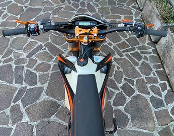 vendo ktm xcw 125 per passaggio a cilindrata superiore utilizzata esclusivamente in strada. pistone con 20 ore, blocco con 260 ore totali con manutenzione svolta regolarmente, appena fatta revisione. la moto non presenta alcun difetto e funziona perfettamente, presenta un impianto elettrico completo (luci, frecce, stop), omologata motard e posseggo svariati accessori (kit plastiche, ergal…).
