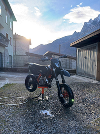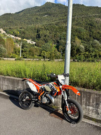Come da titolo KTM 125 exc enduro, doppia omologazione Motard/Enduro, completo di kit plastiche originali più uno di plastiche nere, farò a led, pancia FmF disponibili anche i cerchi da enduro.