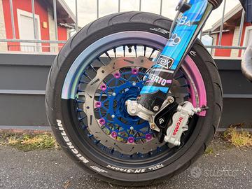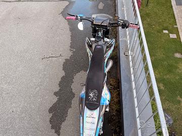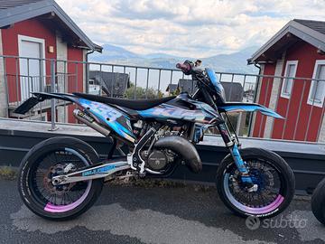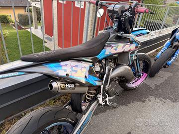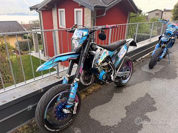 VENDO KTM SX 125 2022 MOTARD, tripla omologazione. La moto monta: -Cerchi faba con mozzi blu anodizzati e nipple blu -Gomme michelin pilot 160/60, anteriore nuova posteriore usata 2mesi -Impianto maggiorato brembo con pastiglie nuove anteriori e posteriori (sposta pinza sp nero e disco sp) -Leve ricavate dal pieno frezione (rTech) -Telaio nero riverniciato da carrozziere -kit carbonio copri serbatoio cmt compositi e copri forcelle -Trasmissione nuova appena cambiata, monta corona da 45 blu e pignone 14 con catena blu twenty (ho anche 3catene e 3pignino e 1 corona in più) -Copri accensione blu SM3D e tamponi -Filtro aria maggiorato WMracing -Faro led angel eye nuovo -Freccie mini -Porta targa Gtlab -Mono centrale e forcelle anteriori rifatte e tarate da WMracing -Copri telaio acerbis bianco -Scarico completo HGS -Kit grafiche full holo+glitter e bicolor -Kit Plastiche complete nere + grigie -Leveraggio WMracing -MONTA FREZIONE REKLUISE AUTOMATIC OMOLOGATA ANCHE A LIBRETTO (partenza+salita e scalata marce senza frezione) -Motore rifatto con 63h all’attivo preparato da WMracing -Sella alcantara con scritta ricamata (solo roba caliente) -Rigidificatore manubrio della kite forgiato -Pacco lamellare rifatto 17h all’attivo -Specchietti bassi mini -Gomme cross nuove di pacca con cerchioni exceel -Kit viti in ergal -Impianto elettrico wmracing -Piatta e faretto nuovi -Centralina rimappata con scarico da WMracing e bancata -Batteria maggiorata per impianto elettrico In oltre dispongo di tutto l’originale Sempre tagliandata e manutenuta da meccanico tenuta in maniera perfetta e maniacale, scrivere se realmente interessati no perditempo sopratutto !! Possibile spedizione PREZZO TRATTABILE, MOLTA RICHIESTA