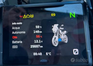 Ktm 1290 Super Adventure, anno 2022 pacchetto elettronico completo; garanzia Ktm con scadenza marzo 2026(estensione), tagliandi e manutenzioni documentate, Tomtom rider con staffa touratech, staffe valige givi.Mai caduta, moto perfetta.
