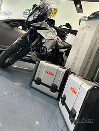 ci sono tantissimi accessori in piu':Bulloneria in ergal arancione compreso di tutti i tappi originali KTM,Scarico omologato Akrapovic,selle con gel e riscaldate,manopole riscaldate,faretti di profondità,tutte le borse originali,paramotore KTM,e tanto altro in piu.