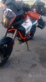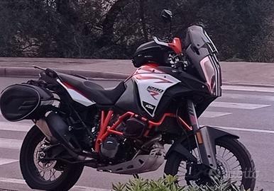 Pedane larghe, cavalletto maggiorato, para motore alluminio, griglia radiatore alluminio, paramani alluminio, griglia protezione faro, per filtri aria, Quick Schiffer, manopole riscaldate, riser manubrio antivibrazione, inserti paracarter carbonio, corona alluminio acciaio, telaietti borse touratech e borse laterali e borselli paramotore morbidi ( con tutti i ricambi originali), gomme 80%, ultimo tagliando 30.000 documentabile kit trasmissione nuovo. Moto perfetta